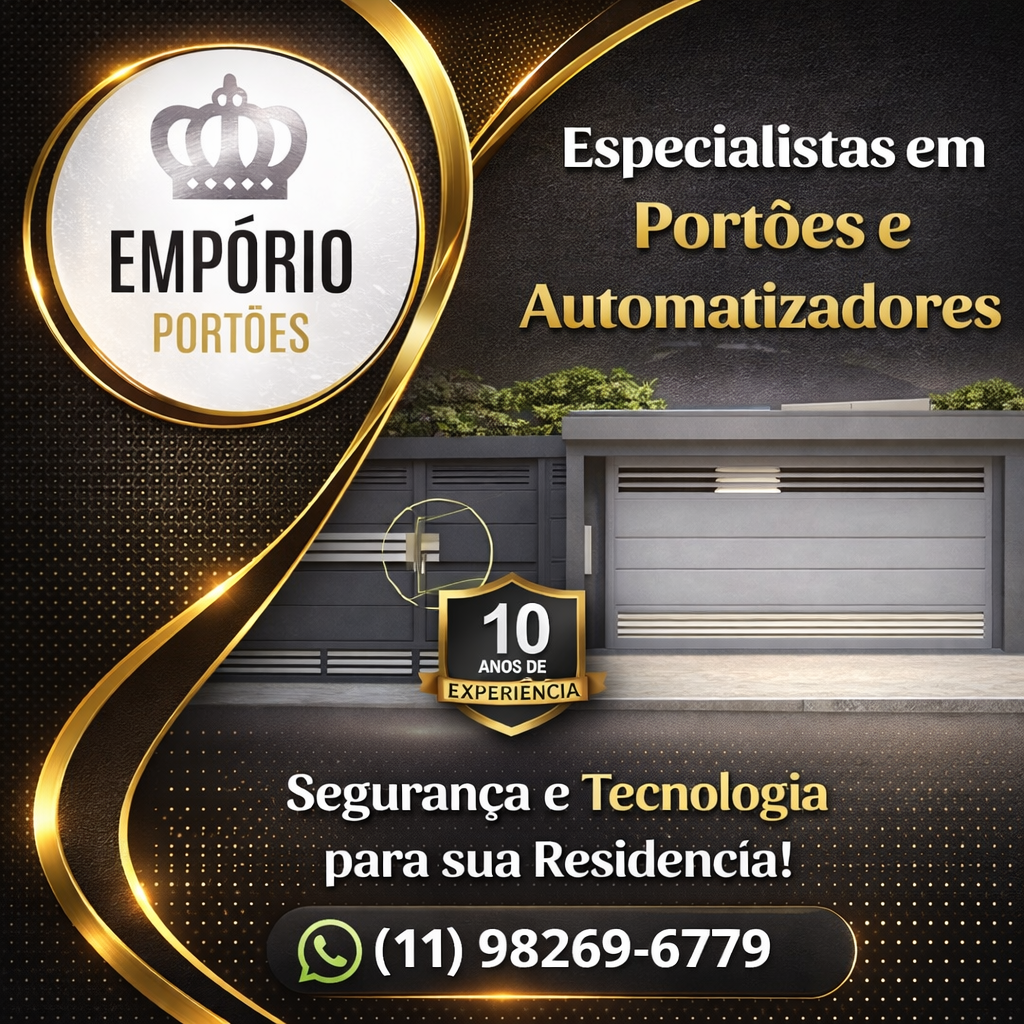 A Empório Portões é especializada em soluções completas em portões automáticos, oferecendo qualidade, segurança e tecnologia para residências, comércios e indústrias. Nosso compromisso é entregar projetos que unem resistência, funcionalidade e um acabamento de alto padrão.